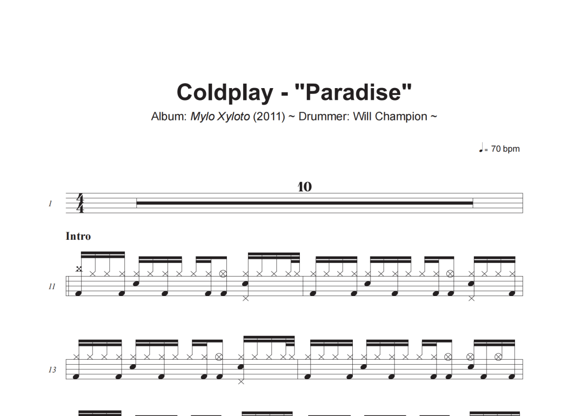 Coldplay《Paradise》架子鼓谱