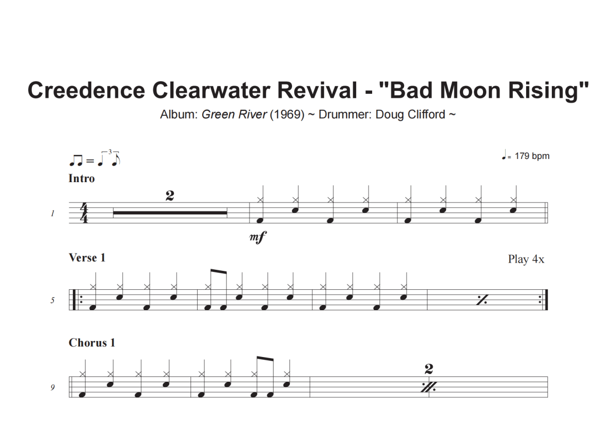 Creedence Clearwater Revival《Bad Moon Rising》架子鼓谱