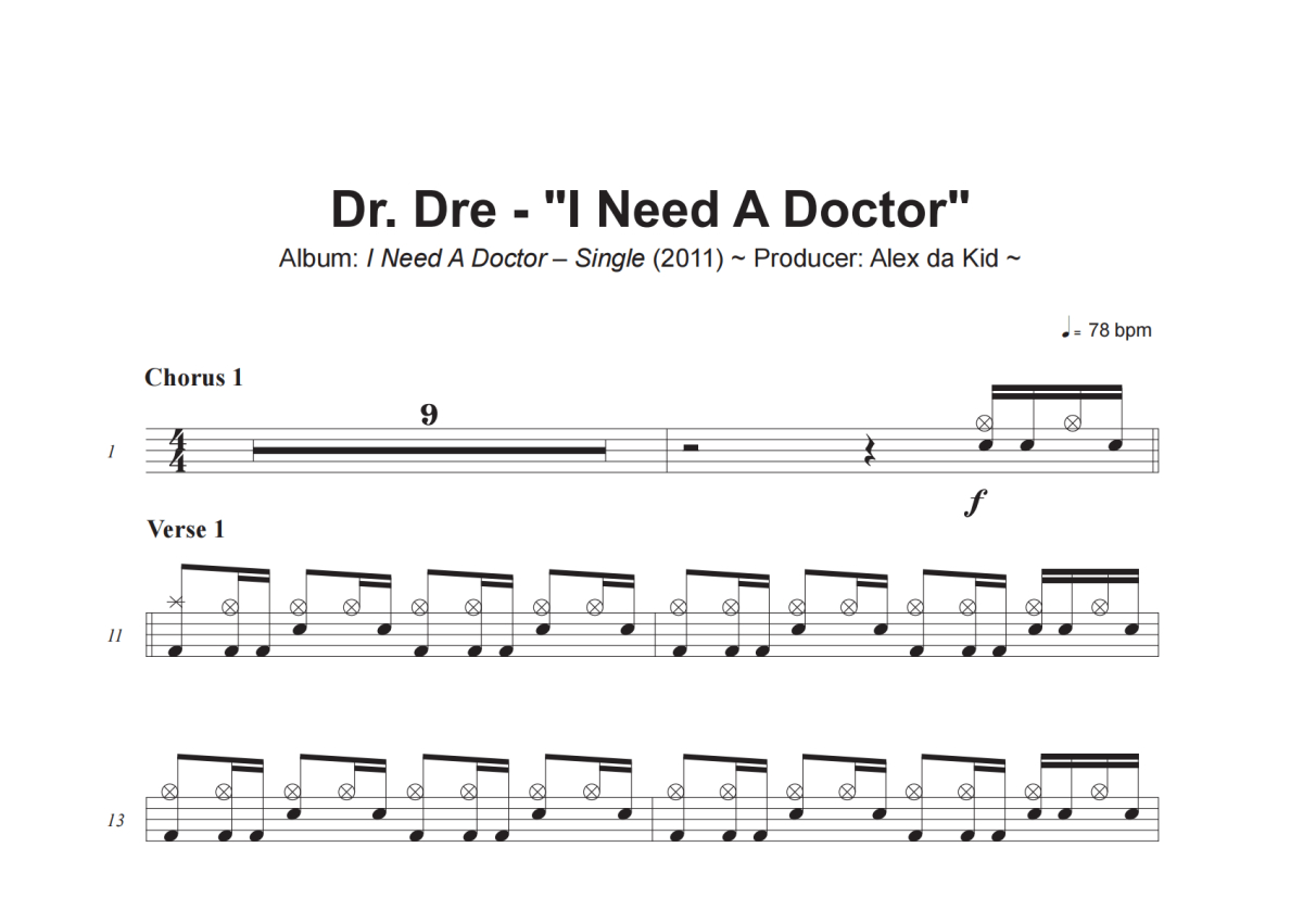 Dr. Dre《I Need A Doctor》架子鼓谱