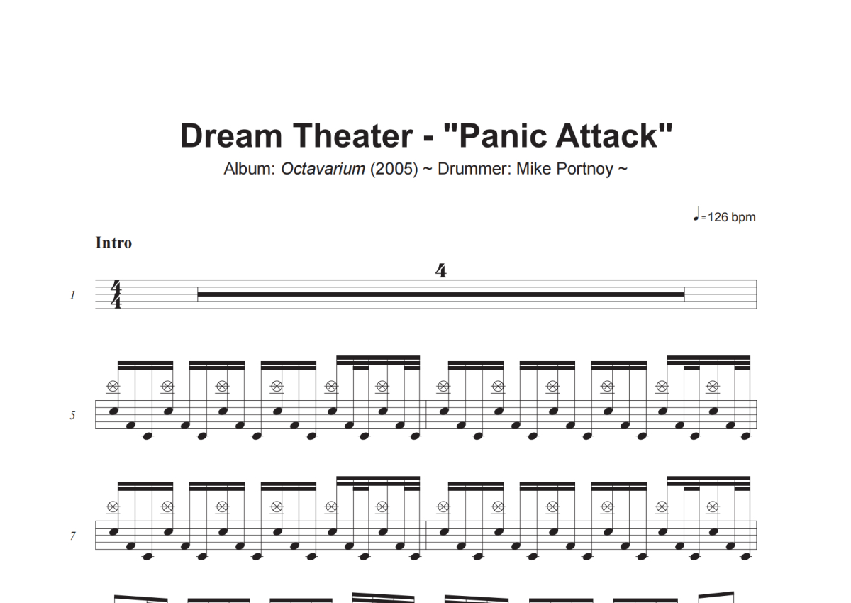 《Panic Attack》是Dream Theater演唱的一首歌曲,这份架子鼓谱共有十一张高清图谱,图谱由 @小虎鼓谱 编配上传,图谱使用五线谱编配,使用这份Panic Attack架子鼓谱,你将能够轻松地敲打出这首Dream Theater的Panic Attack,快来尝试吧。