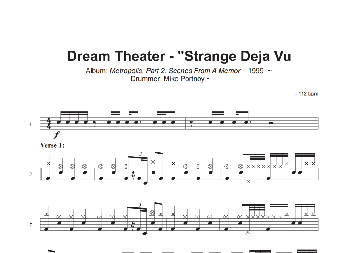 Dream Theater《Strange Deja Vu》架子鼓谱