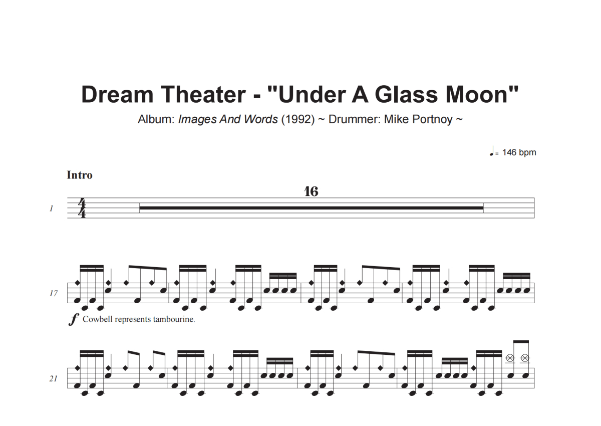 Dream Theater《Under A Glass Moon》架子鼓谱
