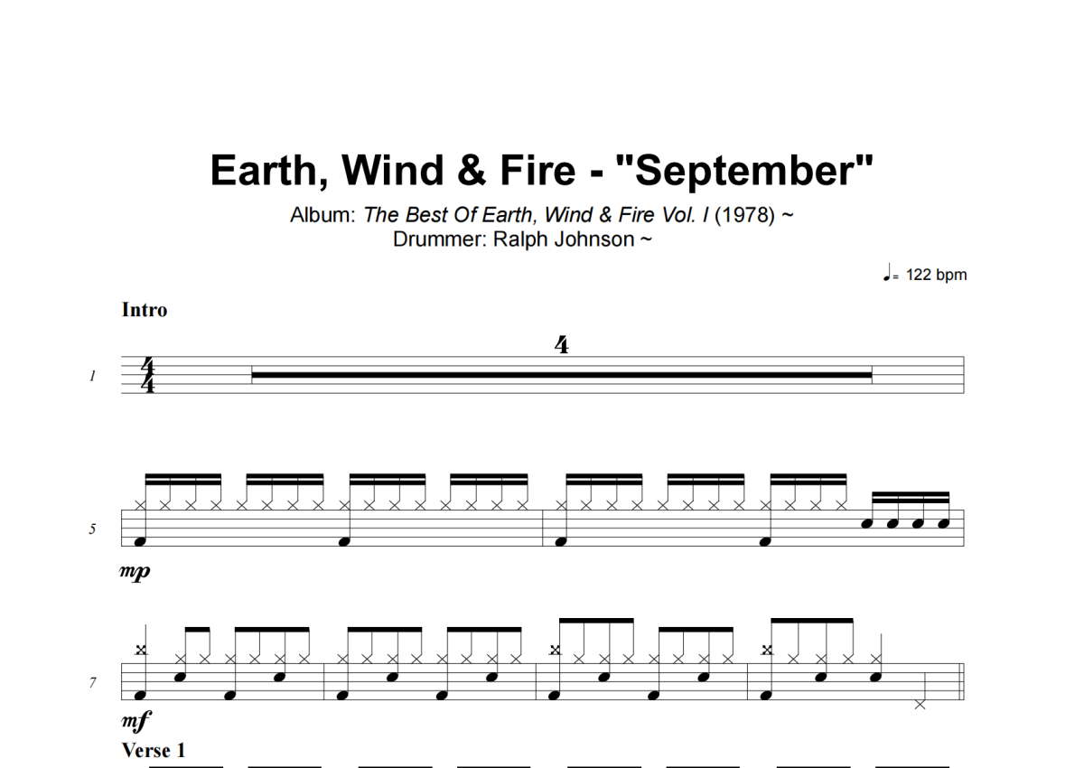 Earth Wind & Fire《September》架子鼓谱