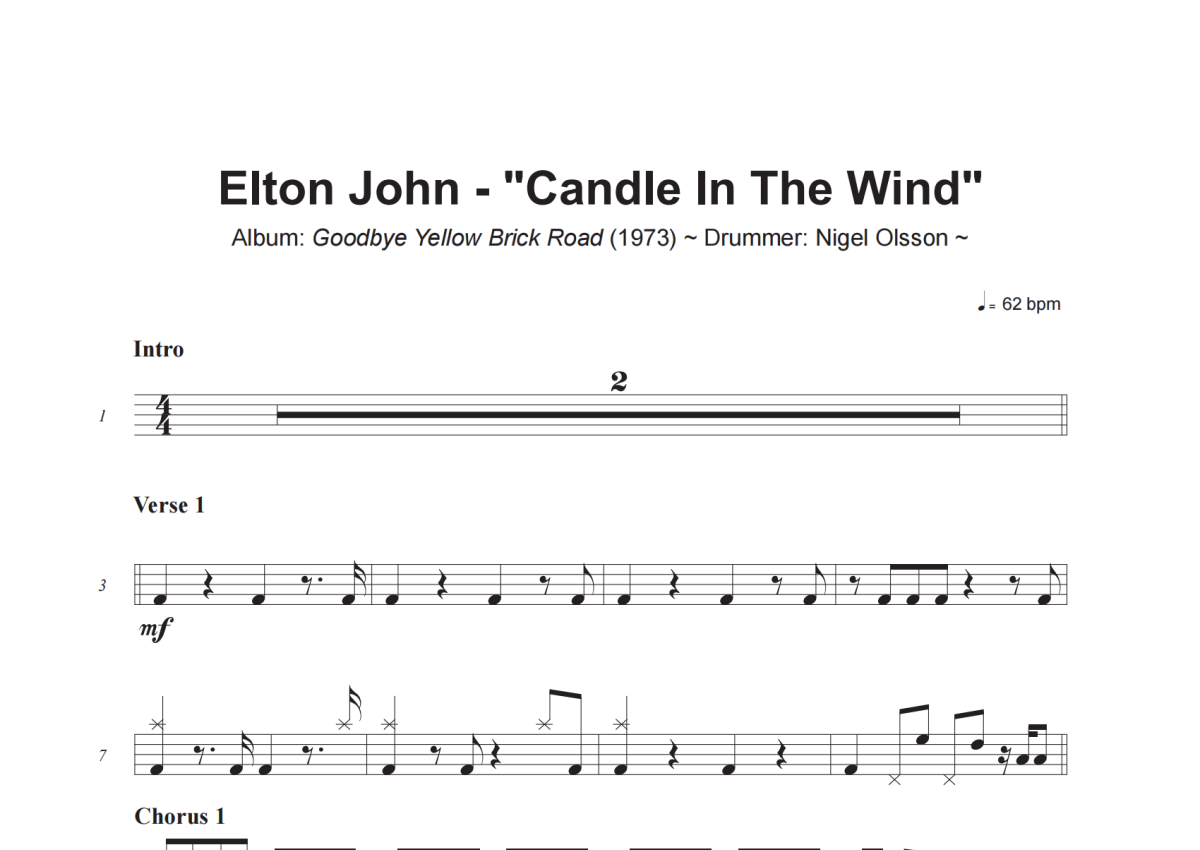 Elton John《Candle In The Wind》架子鼓谱