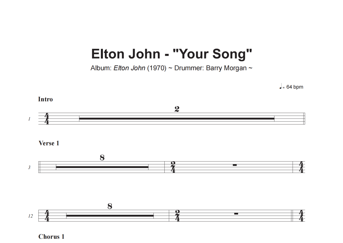 《Your Song》是Elton John演唱的一首歌曲,这份架子鼓谱共有三张高清图谱,图谱由 @小虎鼓谱 编配上传,图谱使用五线谱编配,使用这份Your Song架子鼓谱,你将能够轻松地敲打出这首Elton John的Your Song,快来尝试吧。