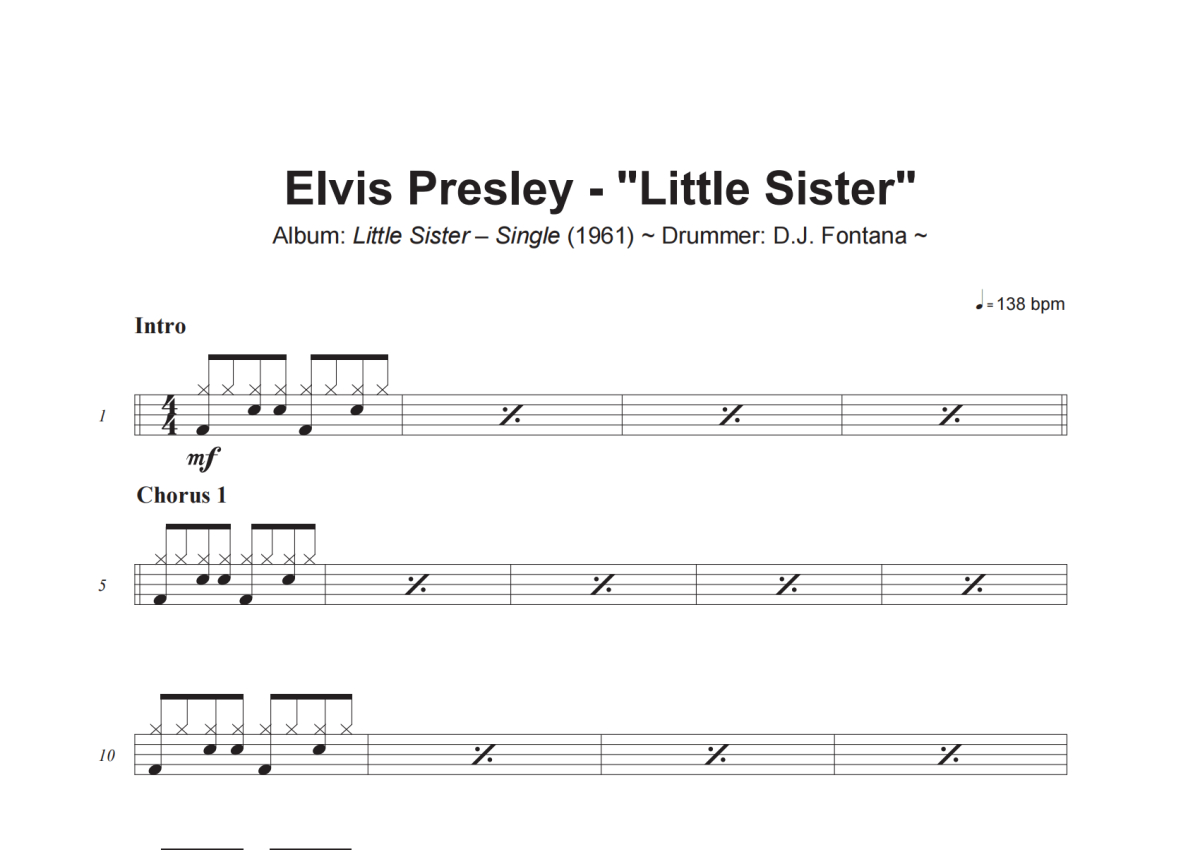 Elvis Presley《Little Sister》架子鼓谱