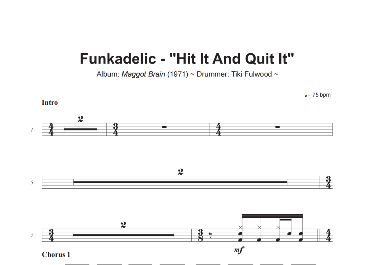 Funkadelic《Hit It And Quit It》架子鼓谱