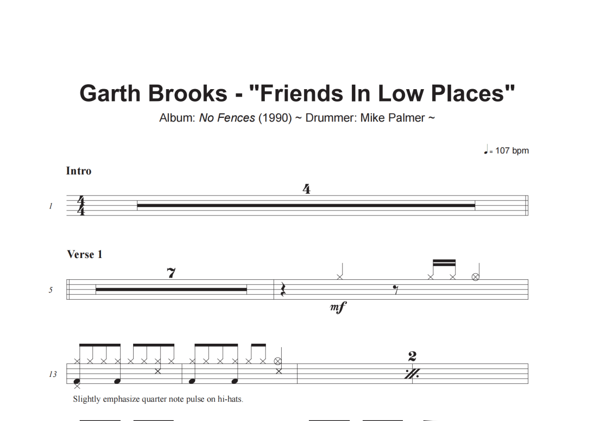Garth Brooks《Friends In Low Places》架子鼓谱