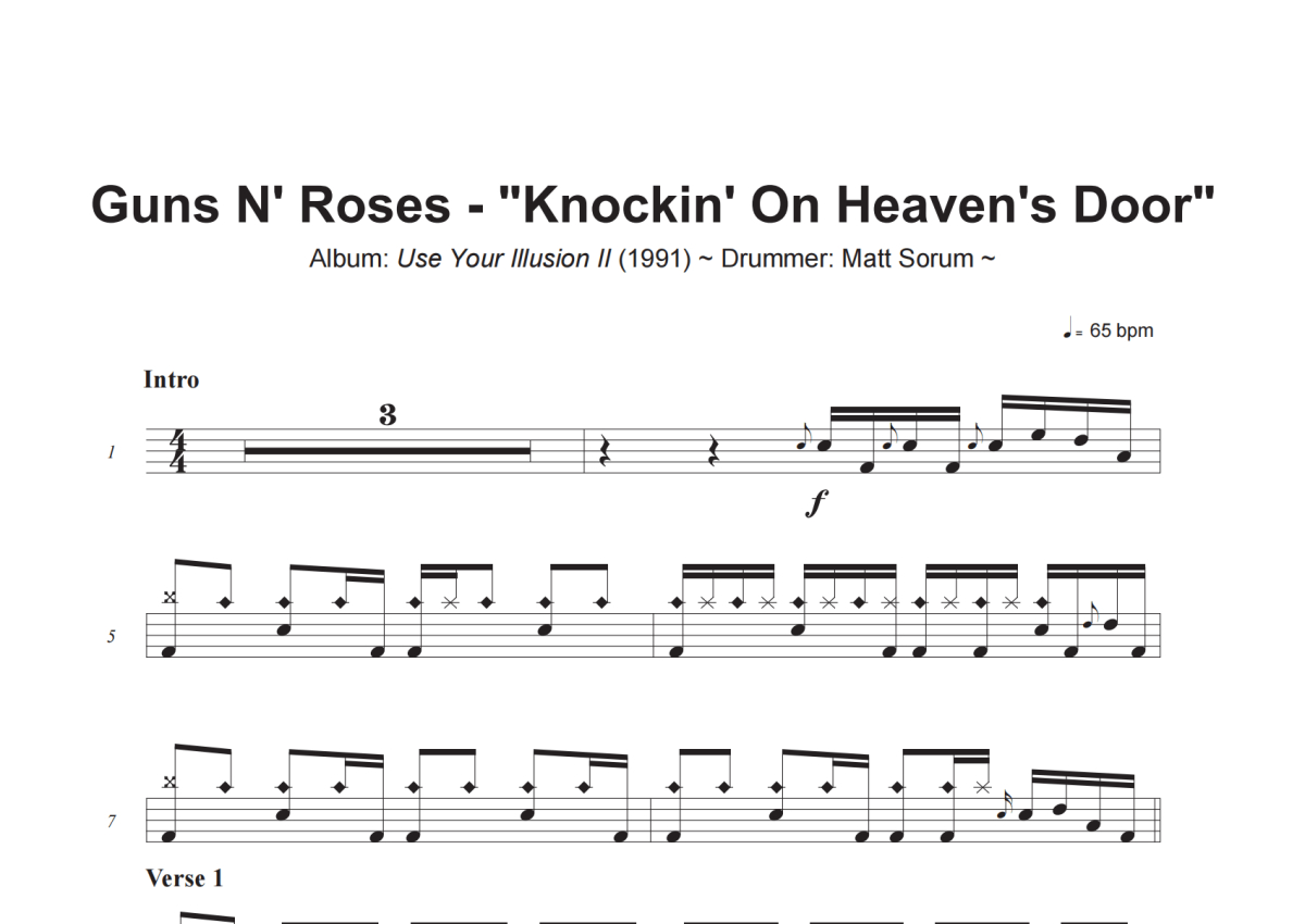 Guns N_ Roses《Knocking On Heaven_s Door》架子鼓谱