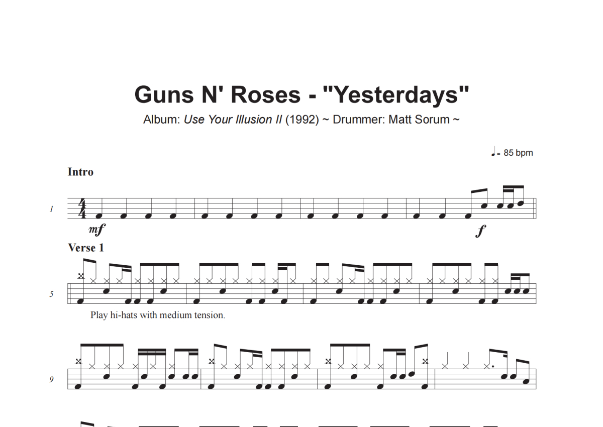 Guns N' Roses《Yesterdays》架子鼓谱