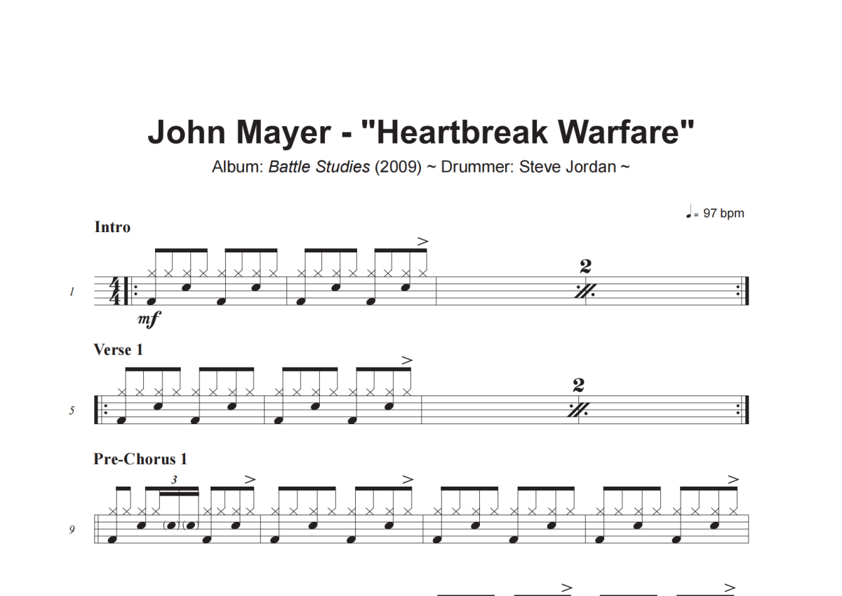 John Mayer《Hearbreak Warfare》架子鼓谱