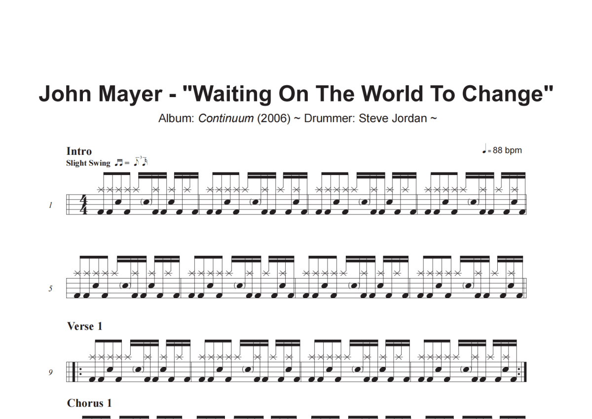 John Mayer《Waiting On The World To Change》架子鼓谱