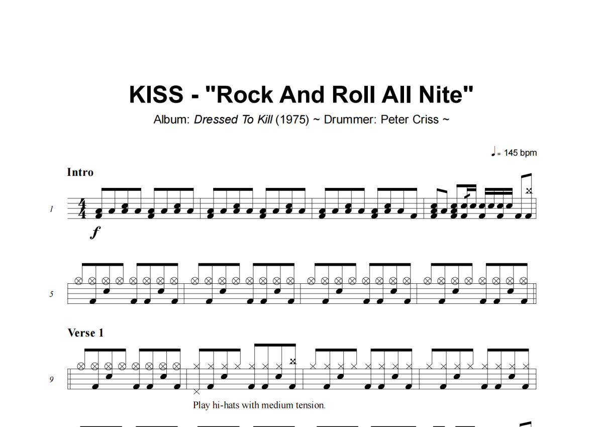 《Rock And Roll All Nite》是KISS演唱的一首歌曲,这份架子鼓谱共有三张高清图谱,图谱由 @小虎鼓谱 编配上传,图谱使用五线谱编配,使用这份Rock And Roll All Nite架子鼓谱,你将能够轻松地敲打出这首KISS的Rock And Roll All Nite,快来尝试吧。