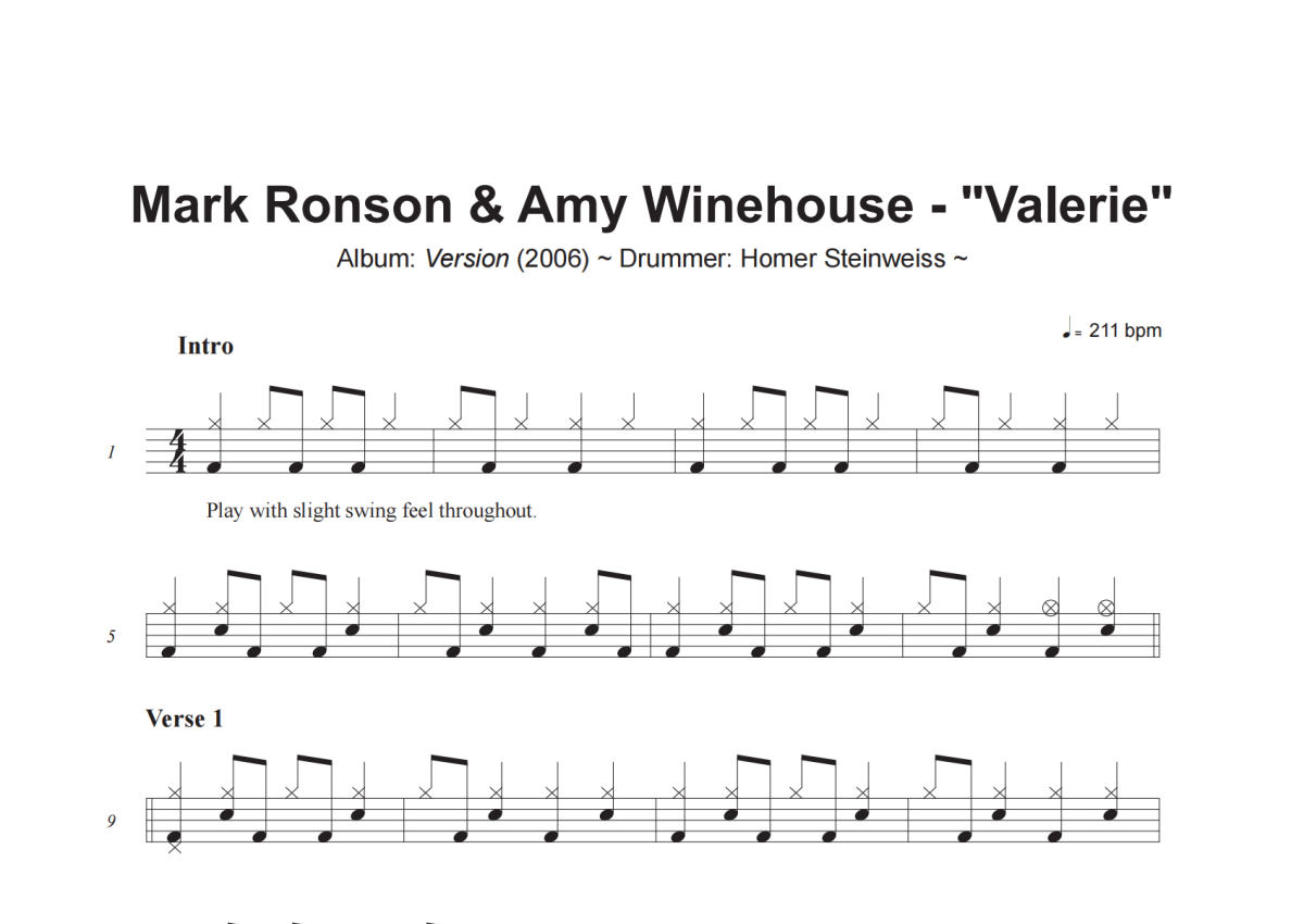 Mark Ronson _ Amy Whinehouse《Valerie》架子鼓谱