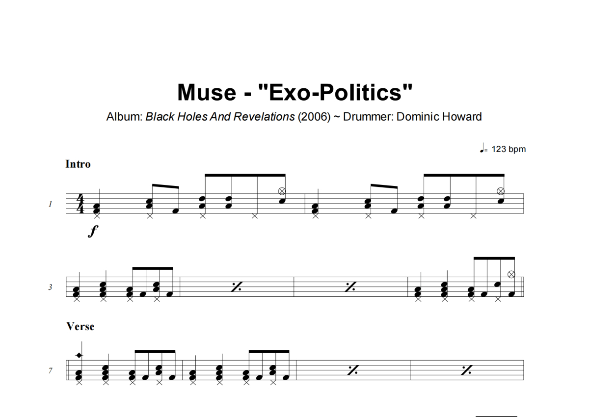 Muse《Exo-Politics》架子鼓谱