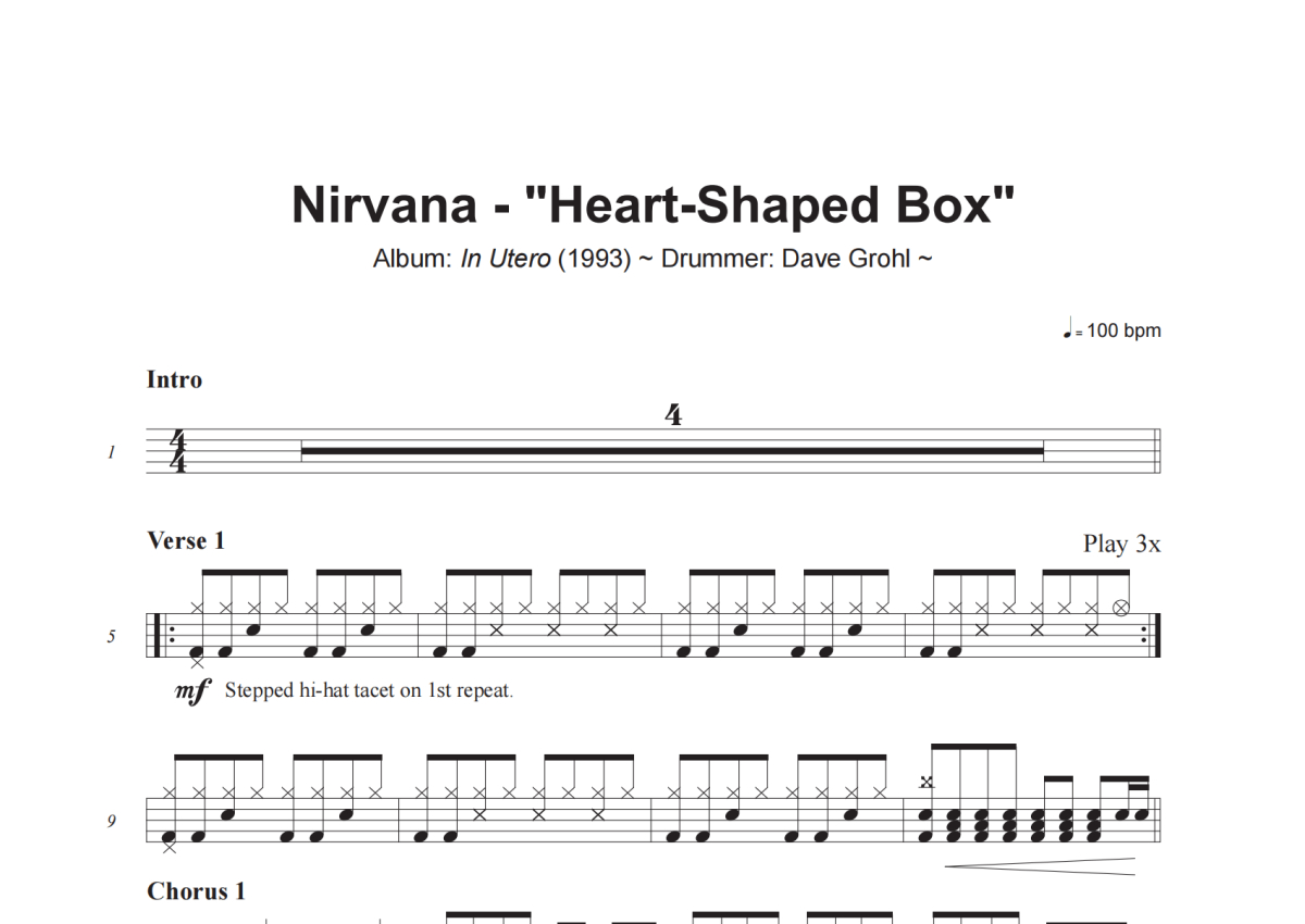 Nirvana《Heart-Shaped Box》架子鼓谱