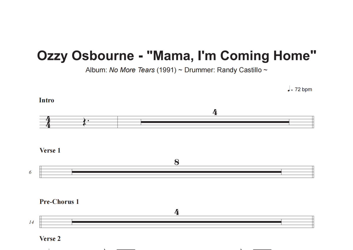 Ozzy Osbourne《Mama, I_m Coming Home》架子鼓谱