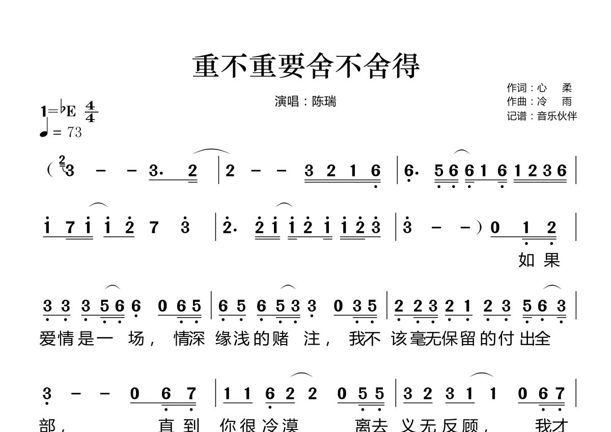 重不重要舍不舍得简谱 - 陈瑞演唱