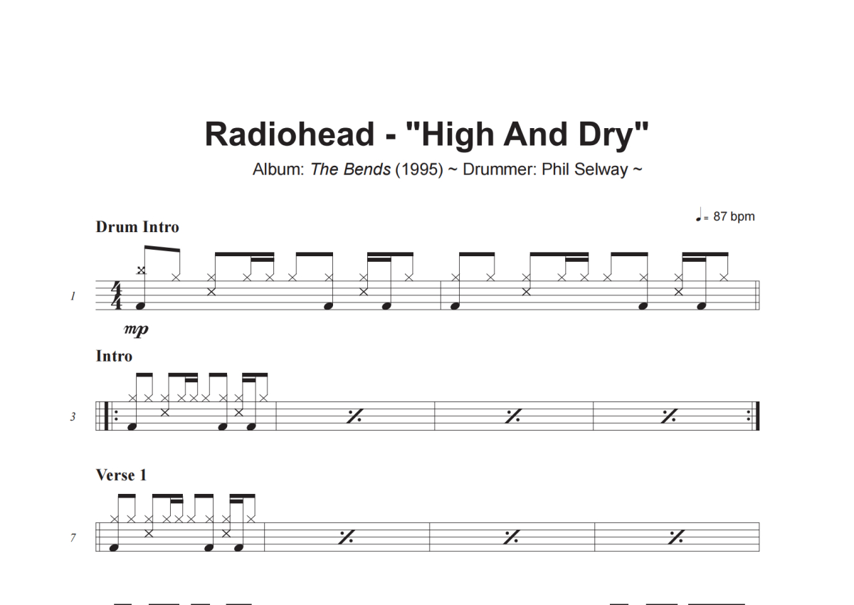 Radiohead《High And Dry》架子鼓谱