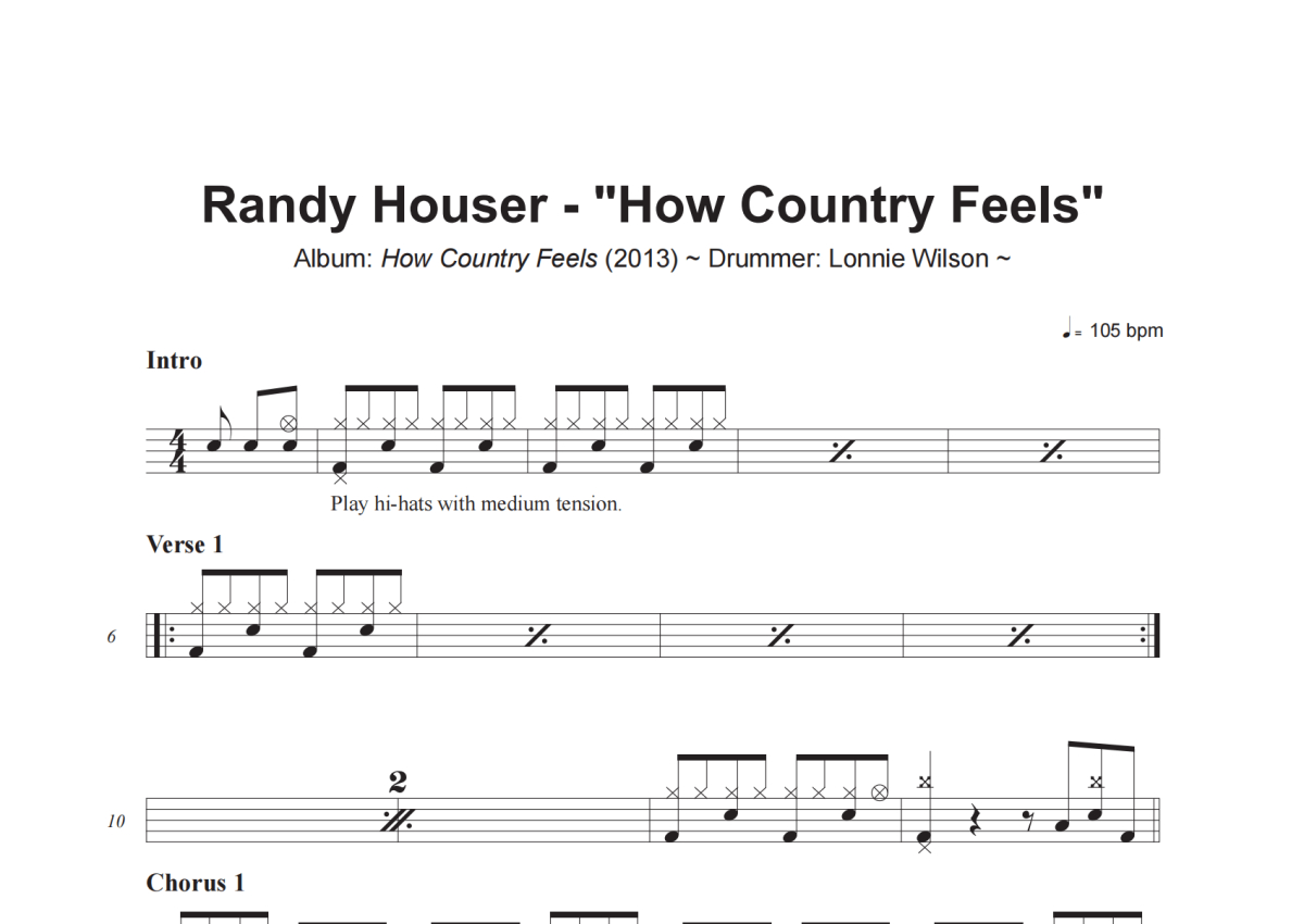 《How Country Feels》是Randy Houser演唱的一首歌曲,这份架子鼓谱共有三张高清图谱,图谱由 @小虎鼓谱 编配上传,图谱使用五线谱编配,使用这份How Country Feels架子鼓谱,你将能够轻松地敲打出这首Randy Houser的How Country Feels,快来尝试吧。