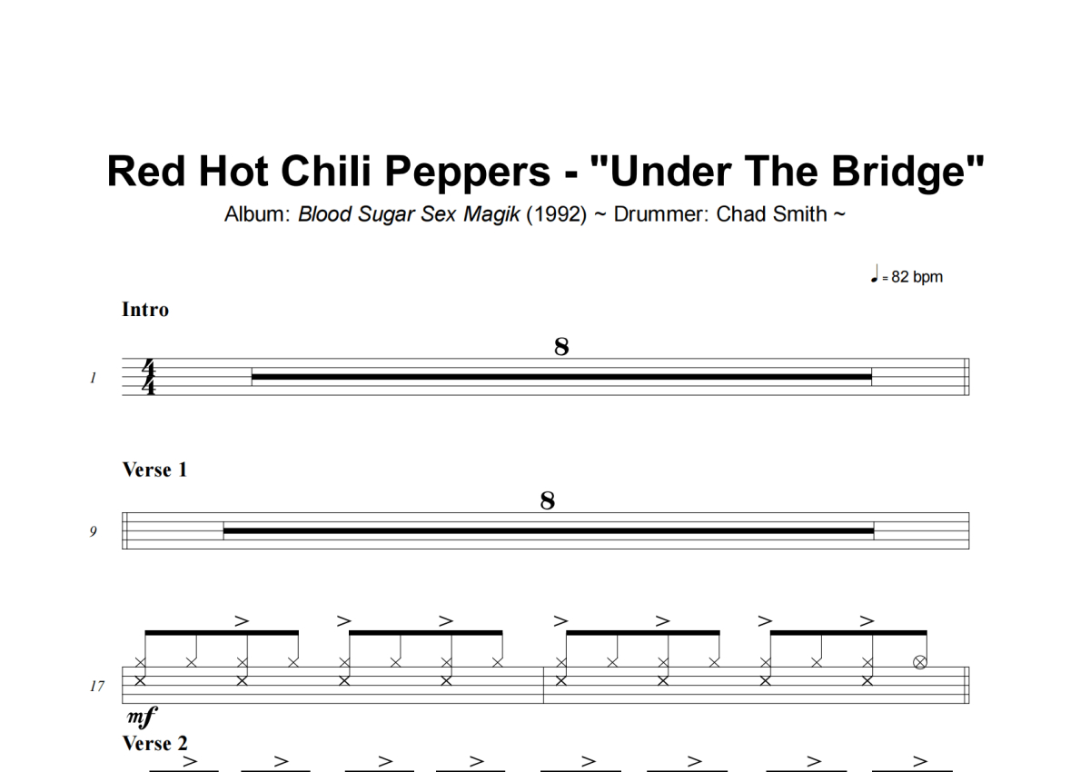 Red Hot Chili Peppers《Under The Bridge》架子鼓谱