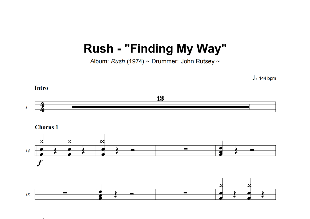 Rush《Finding My Way》架子鼓谱