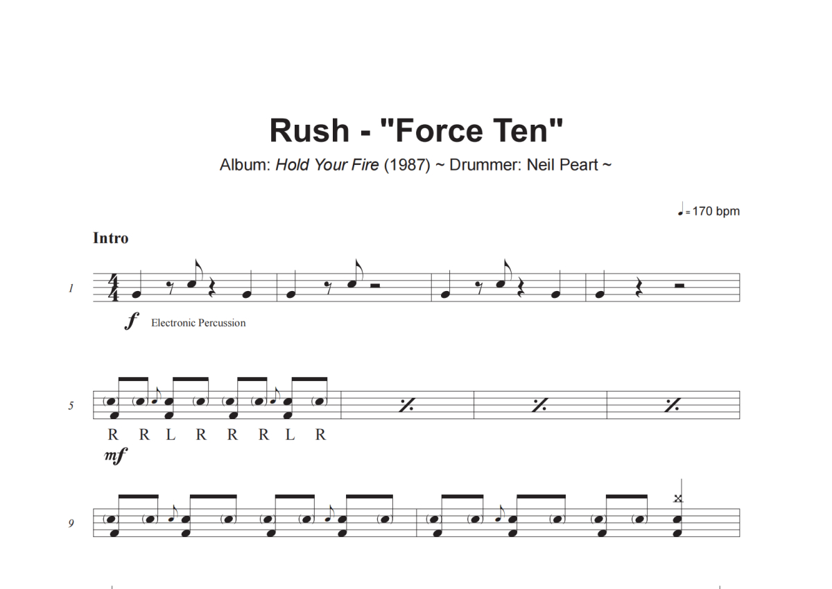 Rush《Force Ten》架子鼓谱