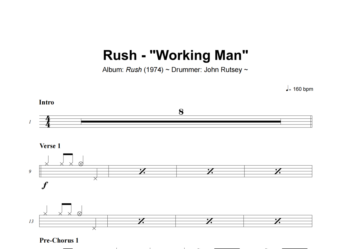 Working Man架子鼓谱 - Rush演唱
