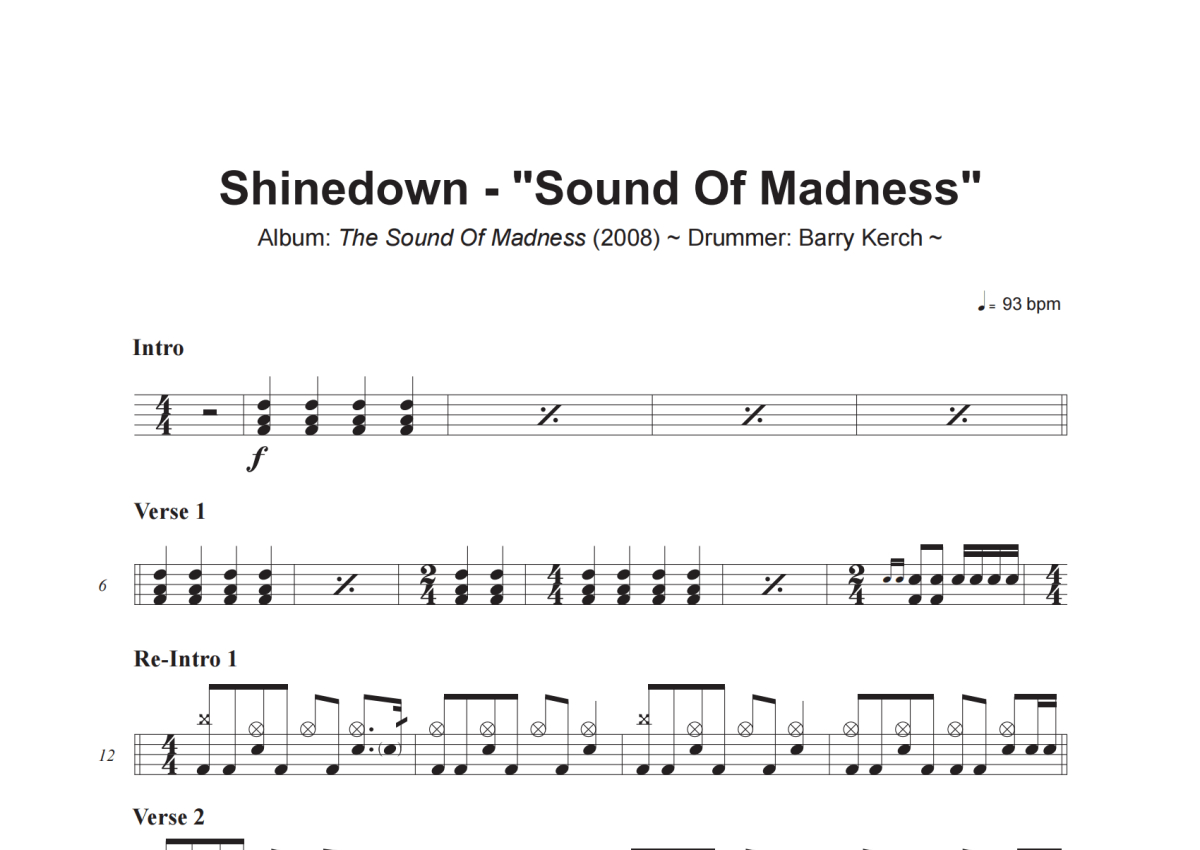 《Sound Of Madness》是Shinedown演唱的一首歌曲,这份架子鼓谱共有三张高清图谱,图谱由 @小虎鼓谱 编配上传,图谱使用五线谱编配,使用这份Sound Of Madness架子鼓谱,你将能够轻松地敲打出这首Shinedown的Sound Of Madness,快来尝试吧。