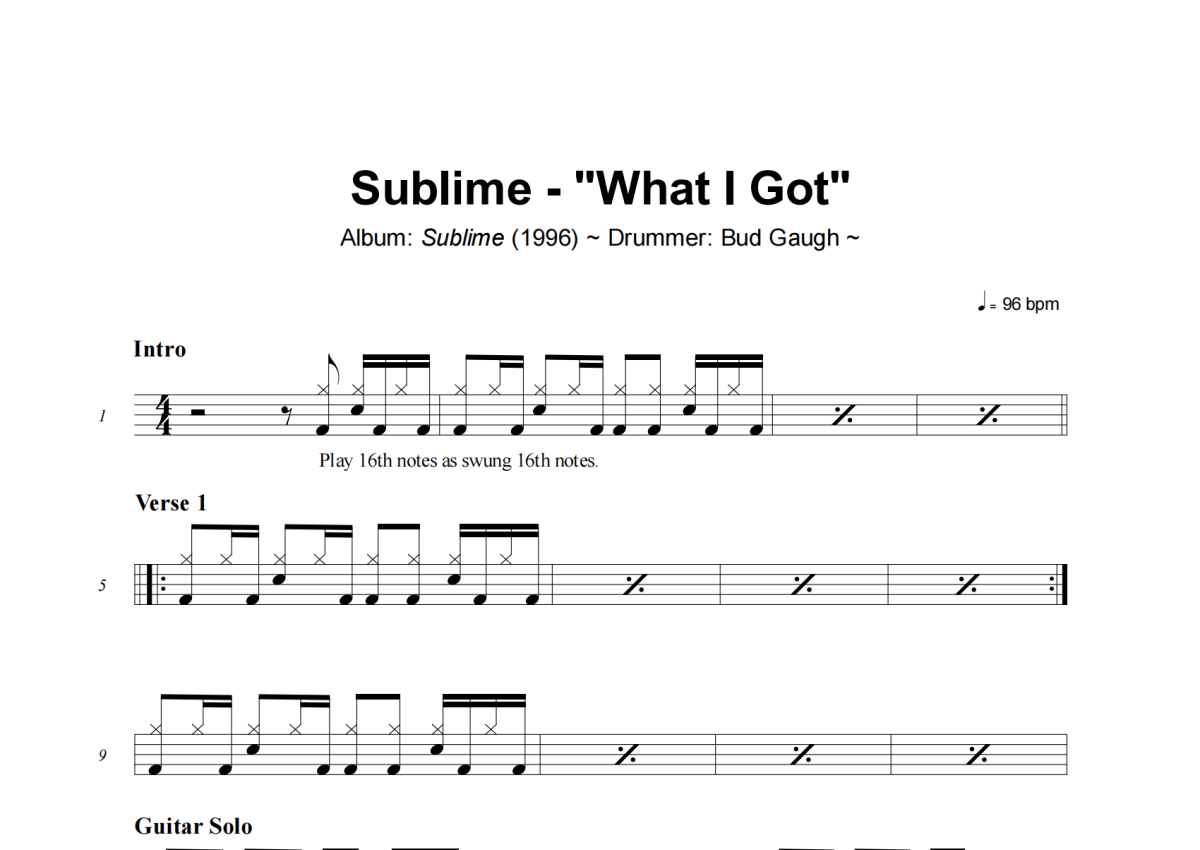 Sublime《What I Got》架子鼓谱