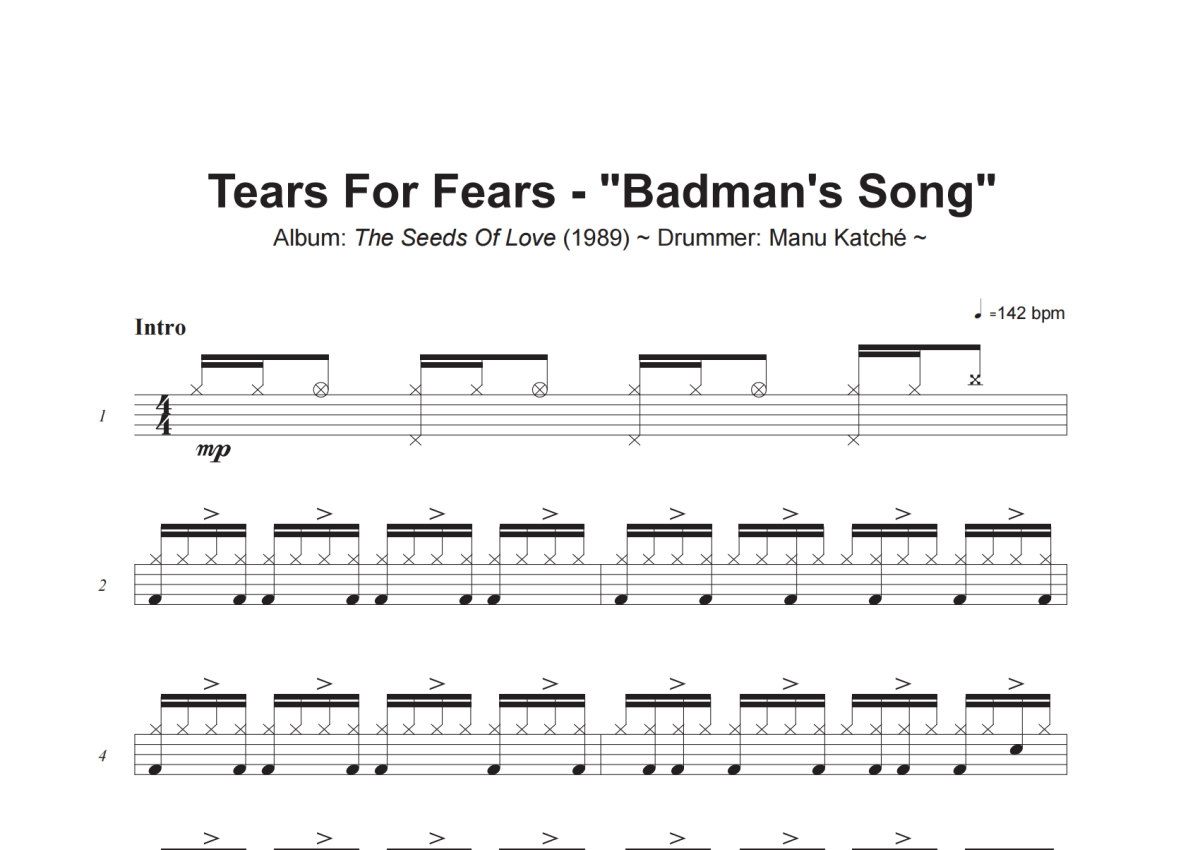 Badman_s Song架子鼓谱 - Tears For Fears演唱