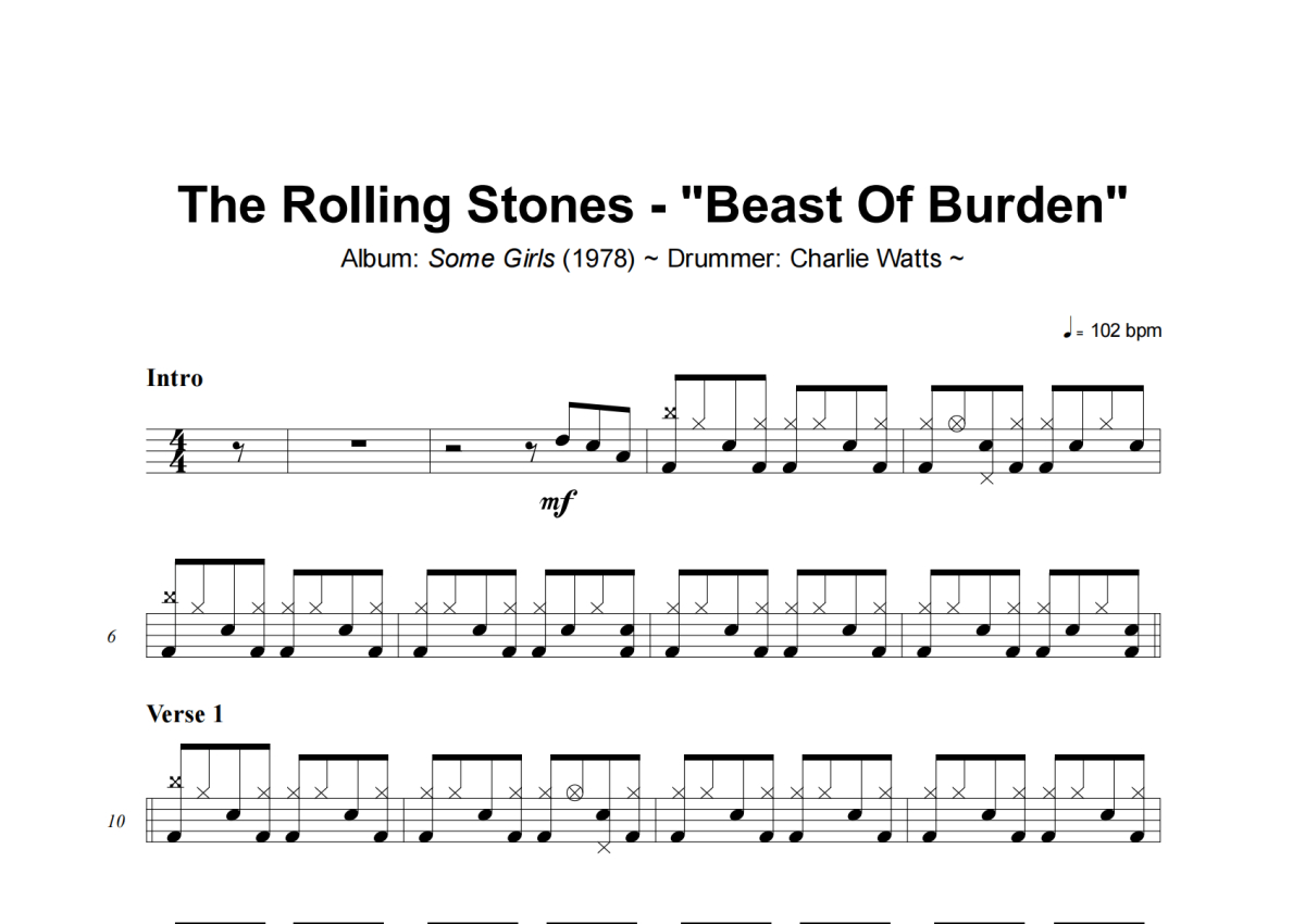 The Rolling Stones《Beast Of Burden》架子鼓谱