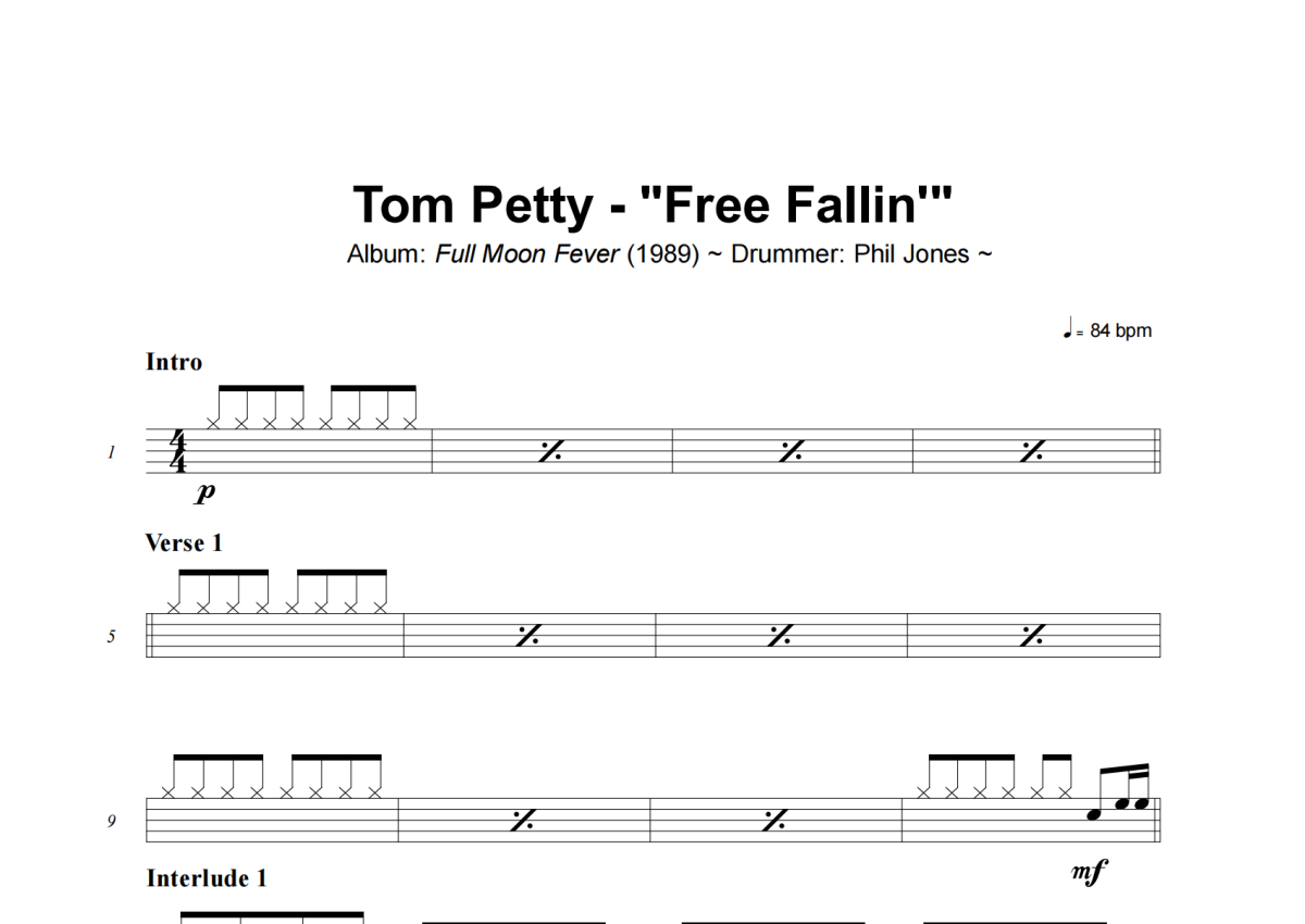 Tom Petty《Free Fallin》架子鼓谱