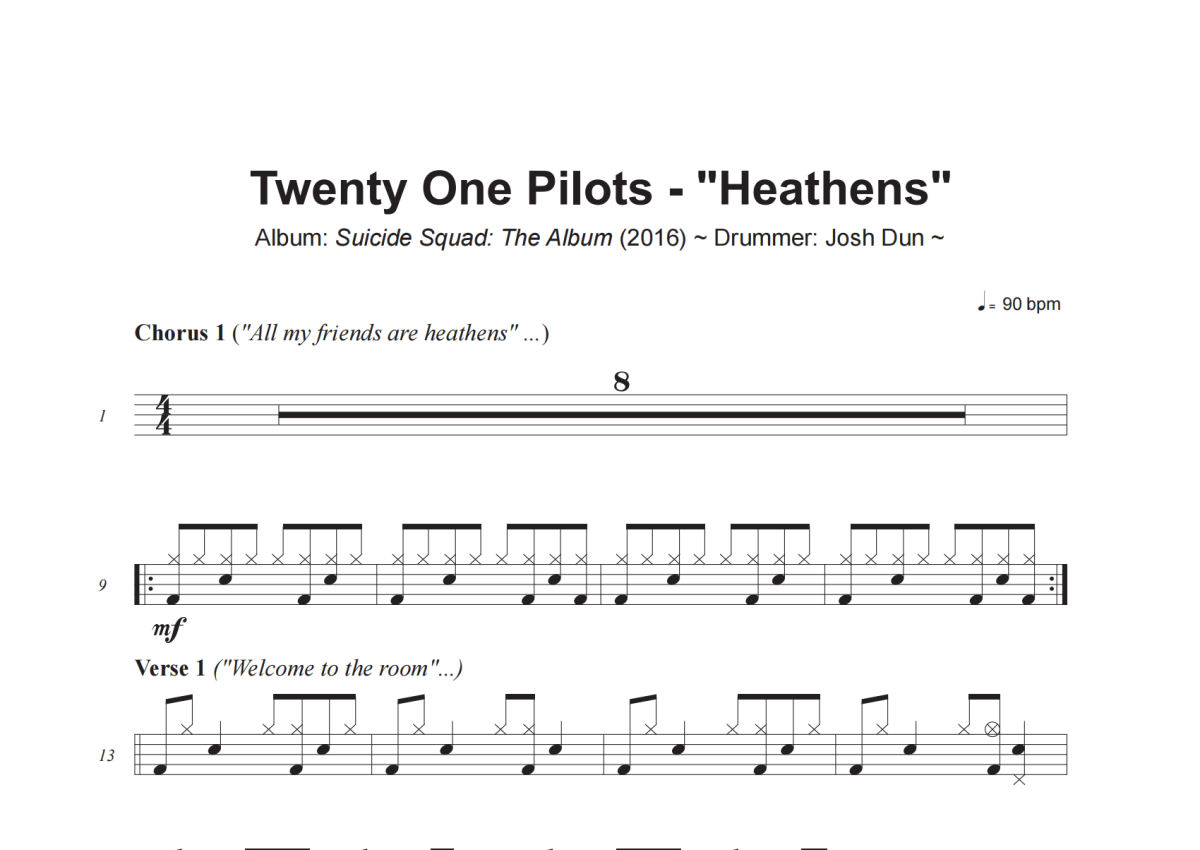 Twenty One Pilots《Heathens》架子鼓谱