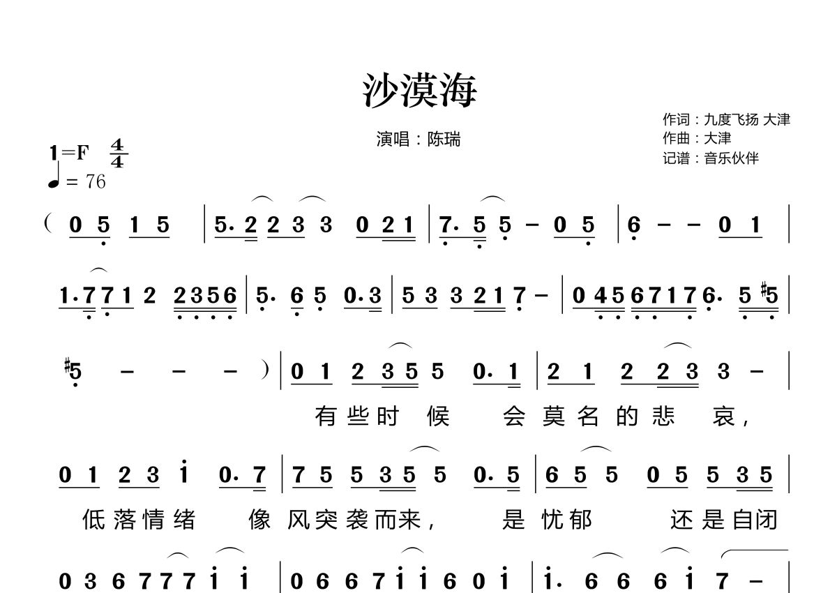 沙漠海简谱 - 陈瑞演唱