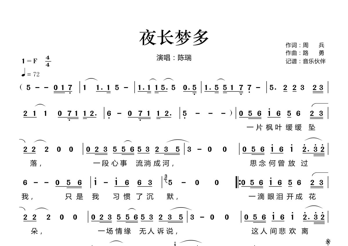 《夜长梦多》是陈瑞演唱的一首歌曲,这份简谱共有一张高清图谱,图谱由 @音乐伙伴 编配上传。