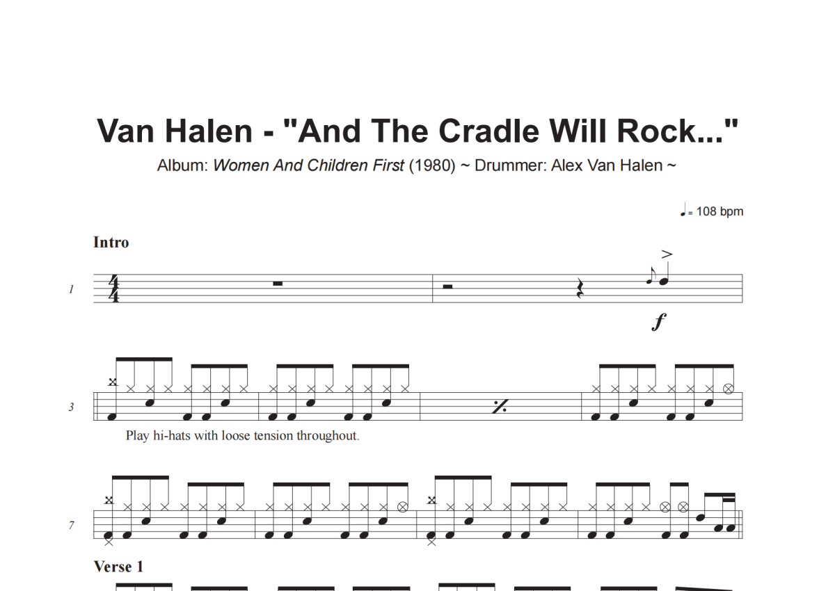 Van Halen《And The Cradle Will Rock》架子鼓谱