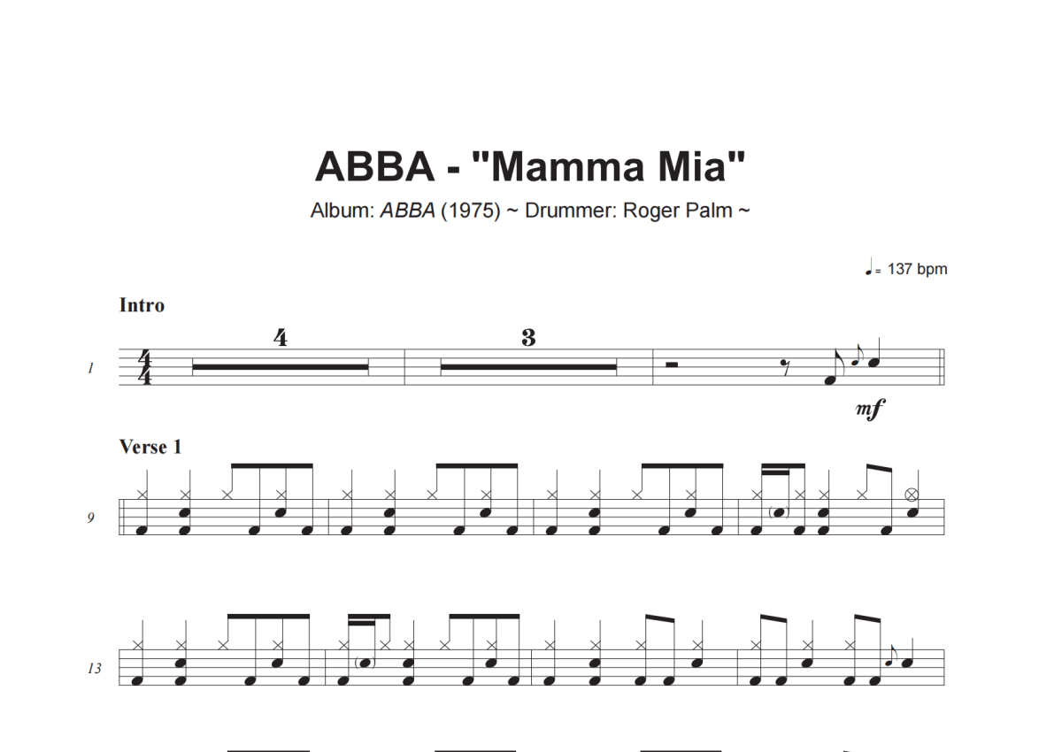 ABBA《Mamma Mia》架子鼓谱