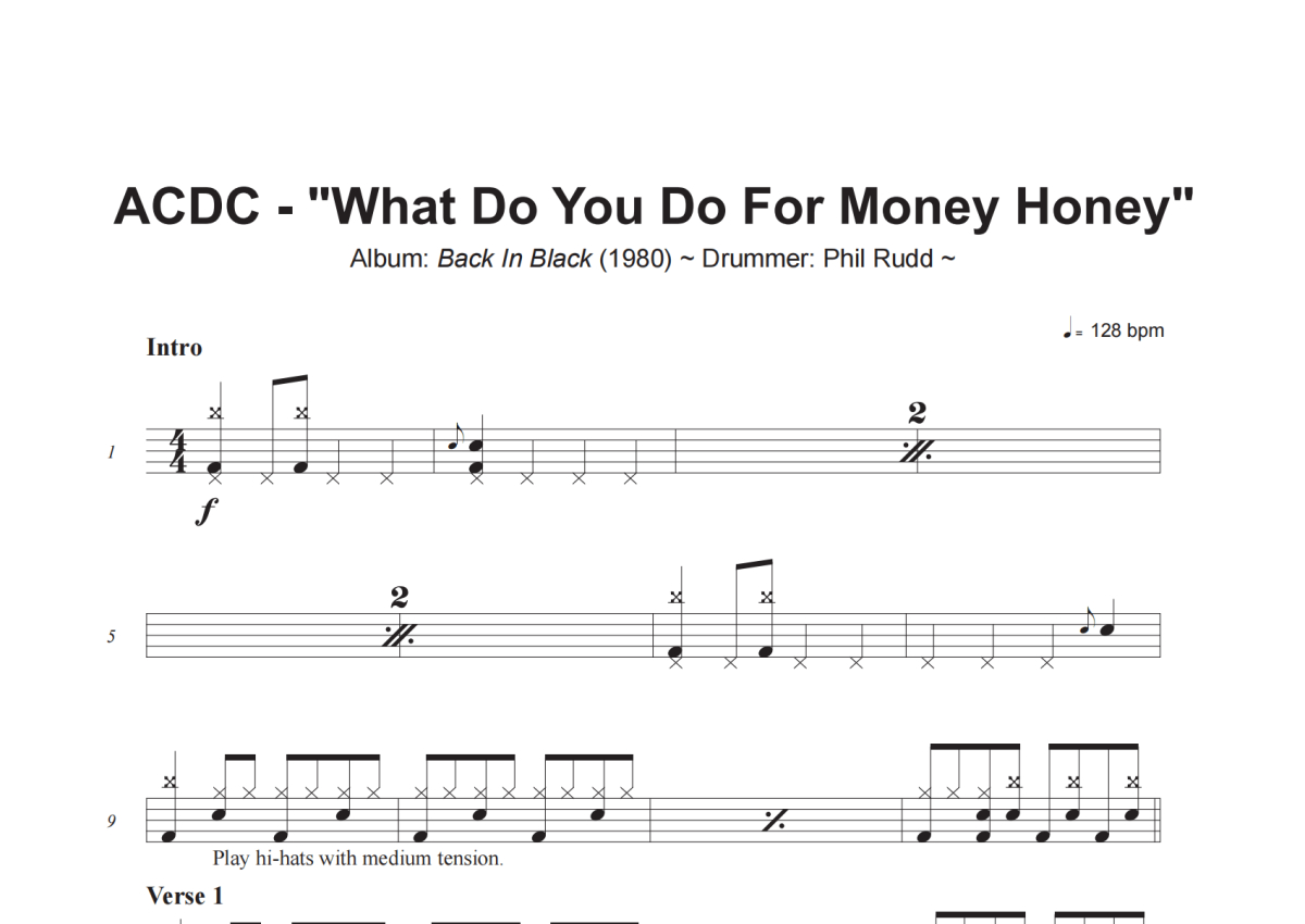 What Do You Do For Money Honey架子鼓谱 - AC/DC演唱