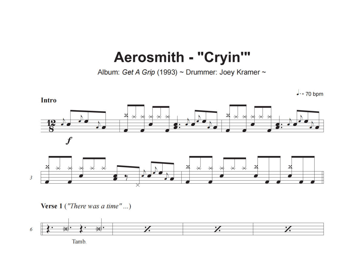 Aerosmith《Cryin'》架子鼓谱