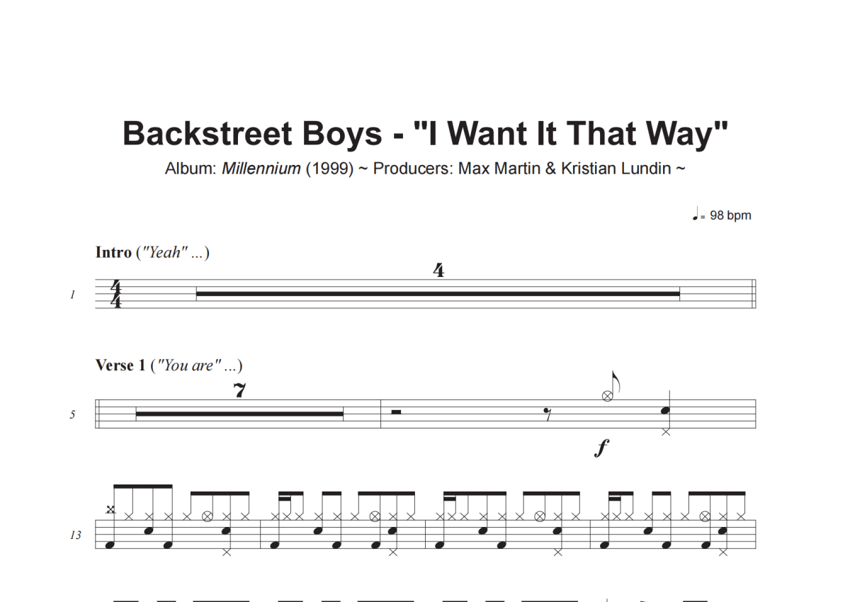 Backstreet Boys《I Want It That Way》架子鼓谱