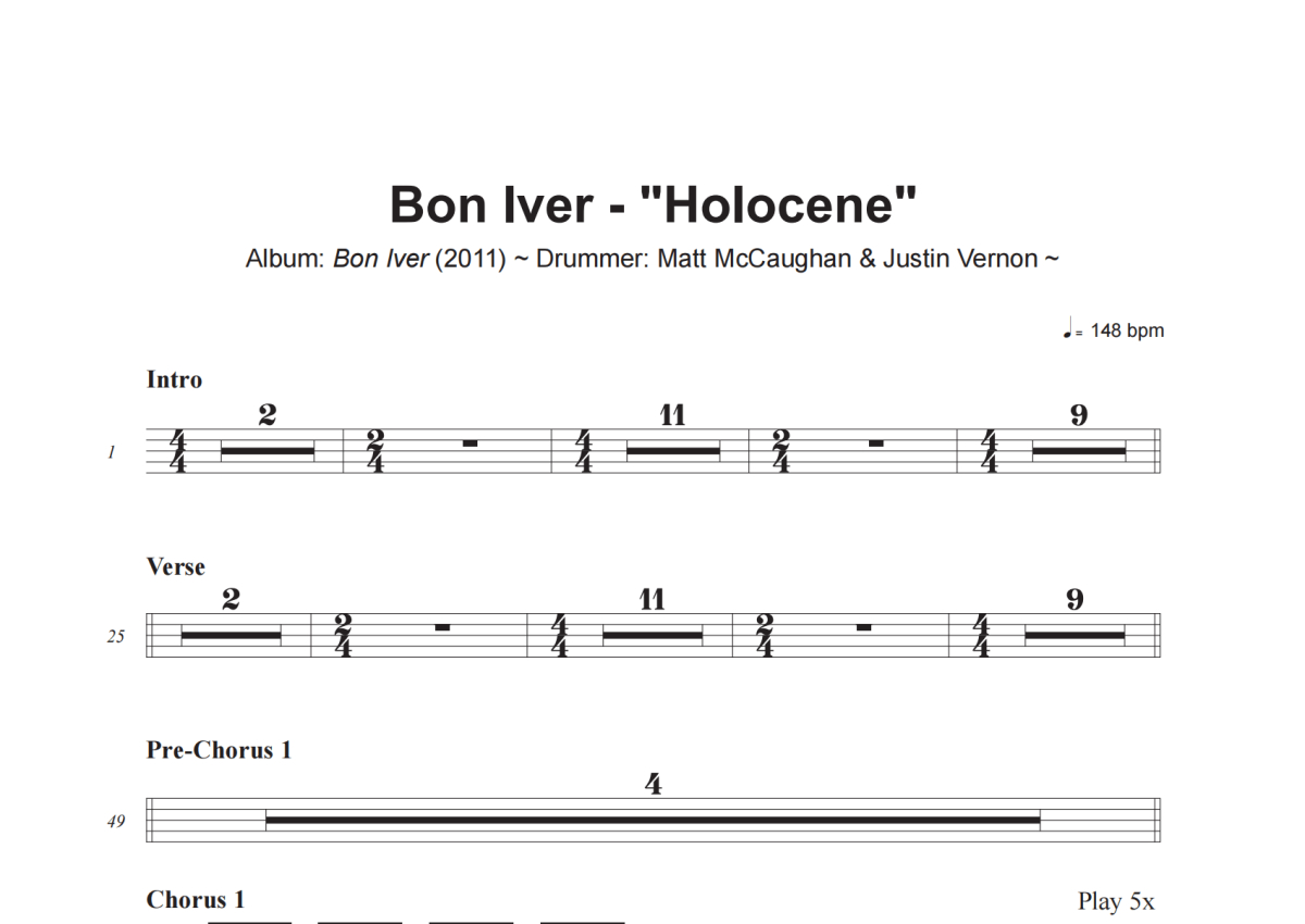Bon Iver《Holocene》架子鼓谱