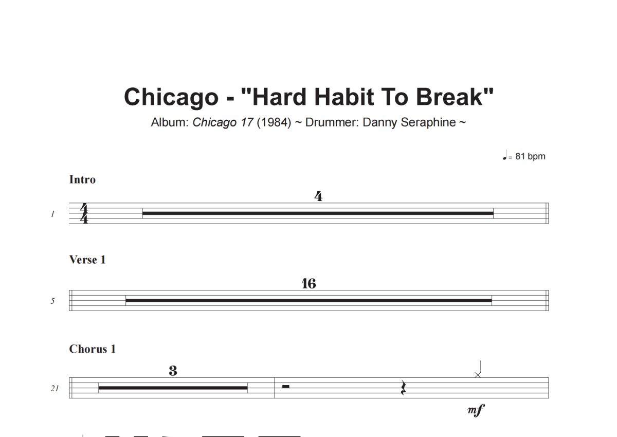 Chicago《Hard Habit To Break》架子鼓谱