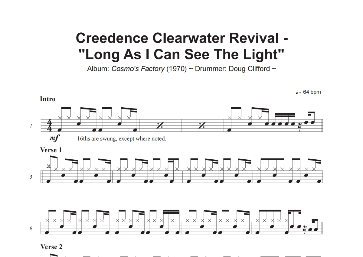 Creedence Clearwater Revival《Long As I Can See The Light》架子鼓谱