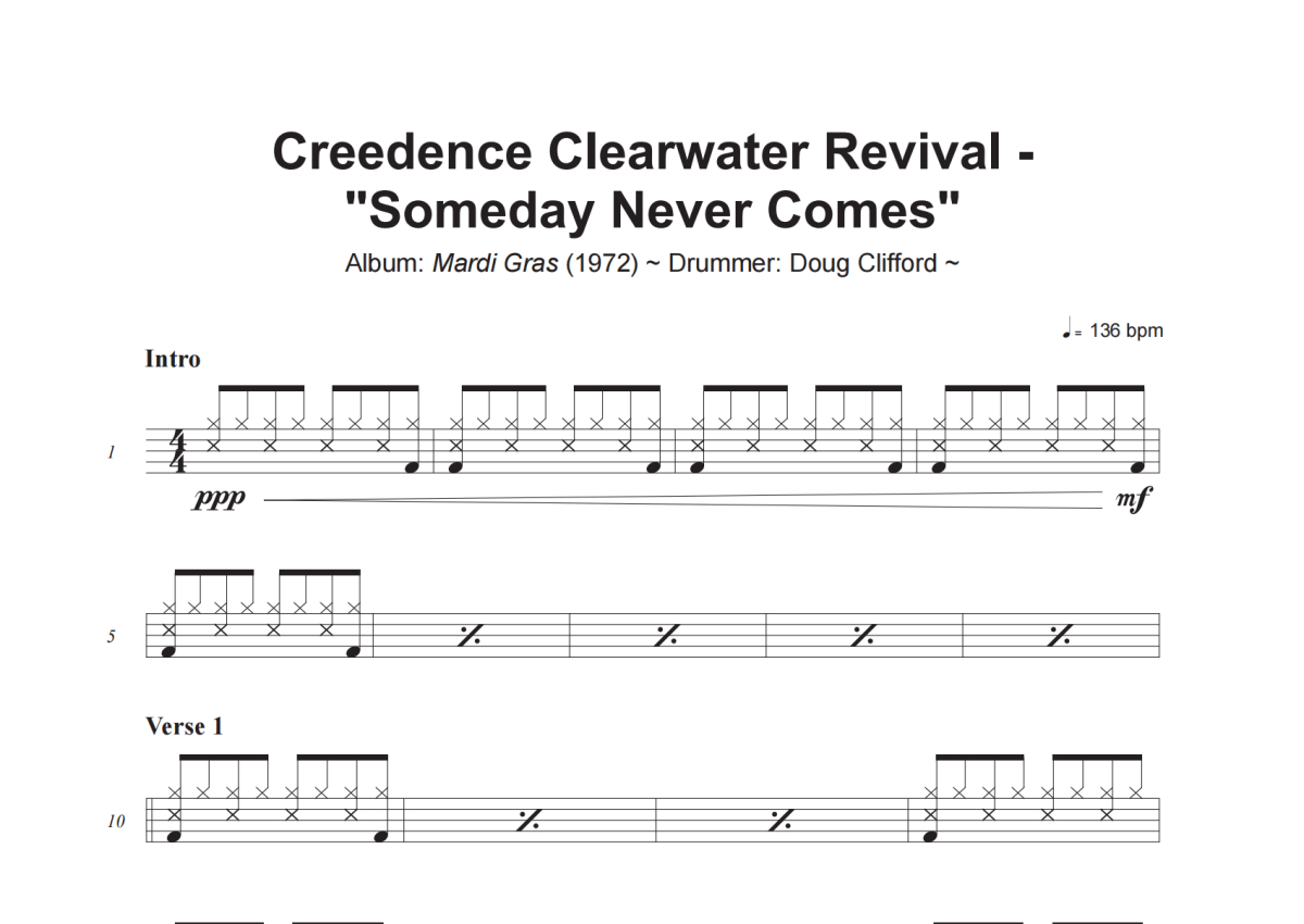 Creedence Clearwater Revival《Someday Never Comes》架子鼓谱
