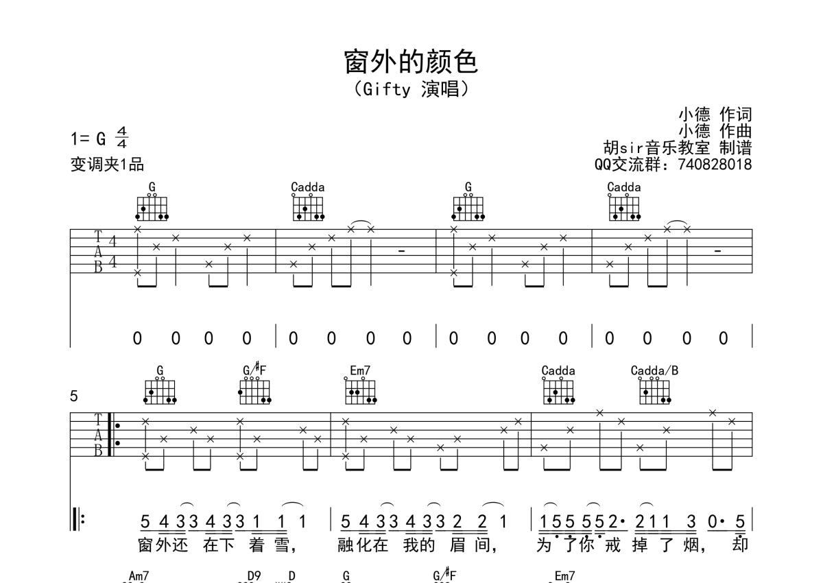 Gifty《窗外的颜色》吉他谱 - G调弹唱六线谱