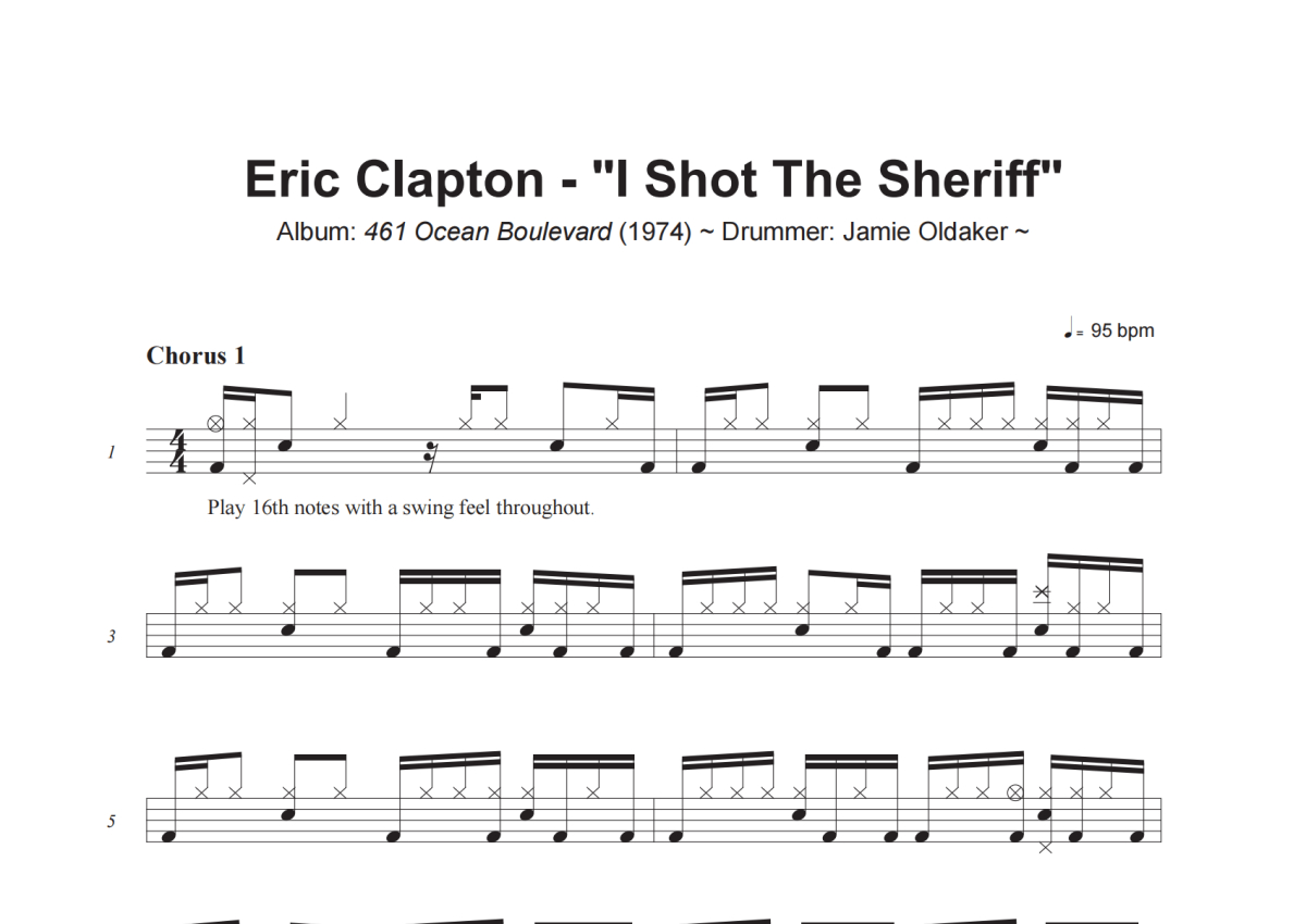 Eric Clapton《I Shot The Sheriff》架子鼓谱