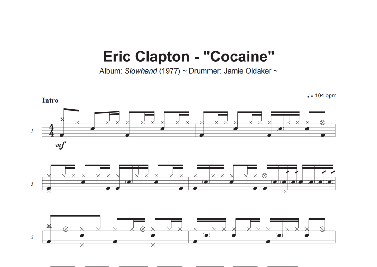 Eric Clapton《Cocaine》架子鼓谱