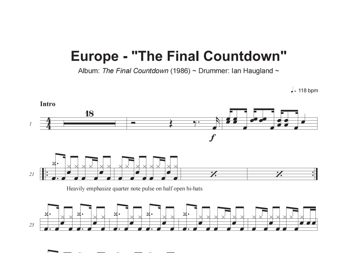 Europe《The Final Countdown》架子鼓谱