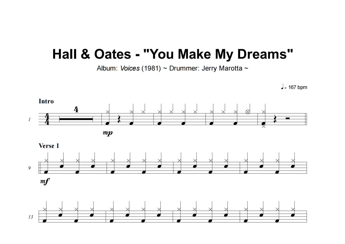 Hall & Oates《You Make My Dreams》架子鼓谱